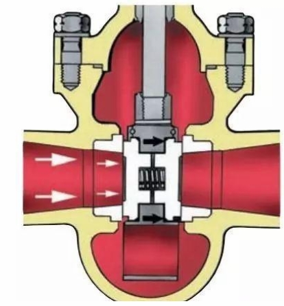 閥門打開平板閘閥閥門關(guān)閉:流體壓力 (箭頭指示)使出口側(cè)的閥瓣與閥座接觸。
